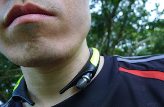 Let's talk about the LG HBS-850. Choker? Collar? Whatever you may name it, the LG TONE sure is a looker. Wearing it around the neck as fashion accessory is certainly an option. For practical purposes, it holds around your neck and doesn't fall off easily. Its design is undeniably striking, sporting bright colors that accentuate this notion. The retractable earphones are really convenient too - pull them out to slot in the ear and pull again to stash it back into storage. This is more apparent if you try to insert earbuds of other sports earphone types such as clip-ons or over-ears with one hand.