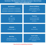 Compatible with: Sennheiser MOMENTUM 4 & 3 and ACCENTUM & more (See below)