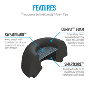 Premium Noise Blocking Earbud Tips Made from Secure Fitting and Comfortable Memory Foam - Black, 3 Pairs, Standard with SweatGuard